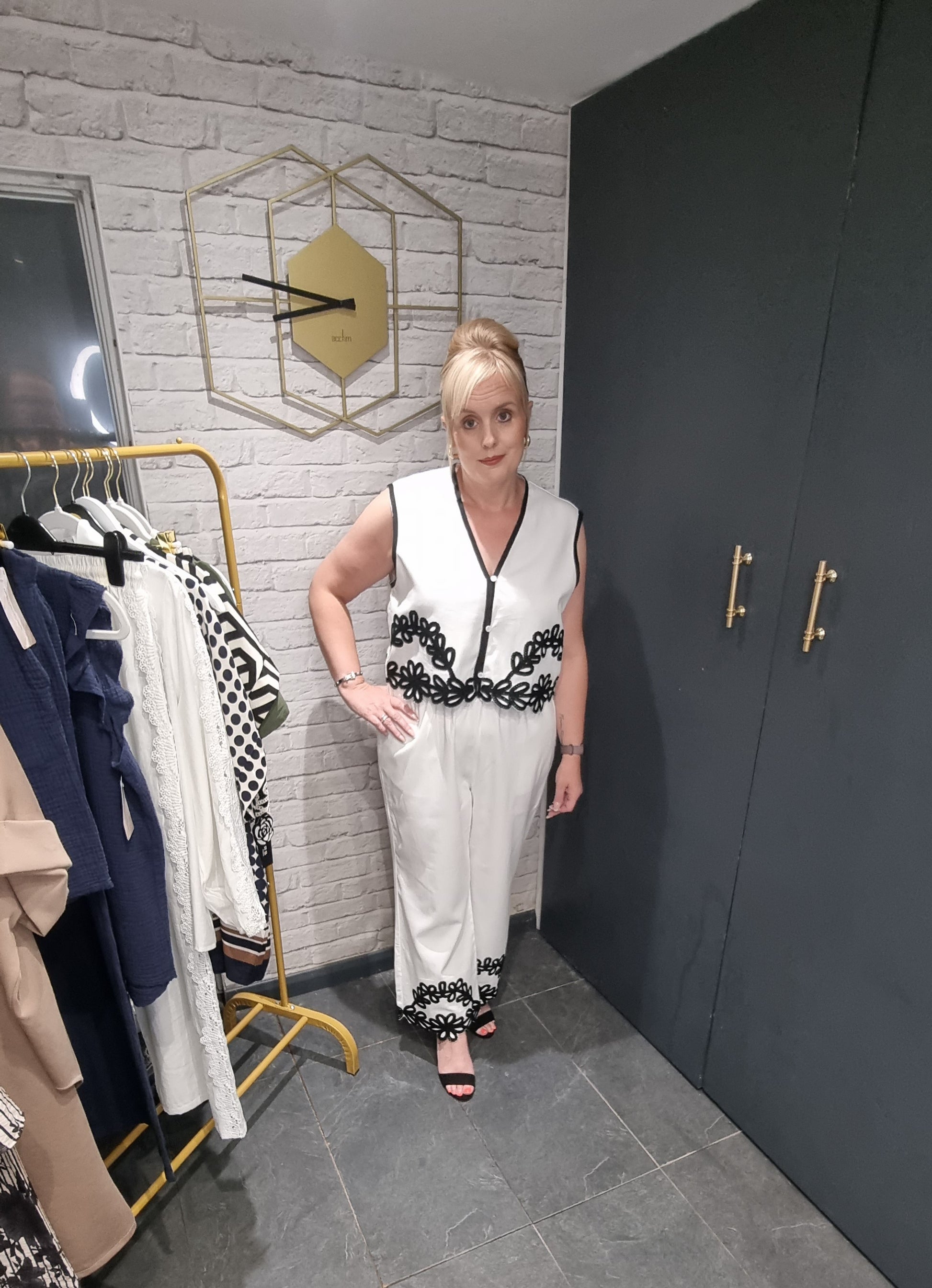 Elevate your wardrobe with The Celine Set, a bold monochrome co-ord designed for effortless modern style. This sleek waistcoat and trouser duo brings sharp tailoring and graphic contrast into perfect harmony, creating a look that’s both powerful and refined.
