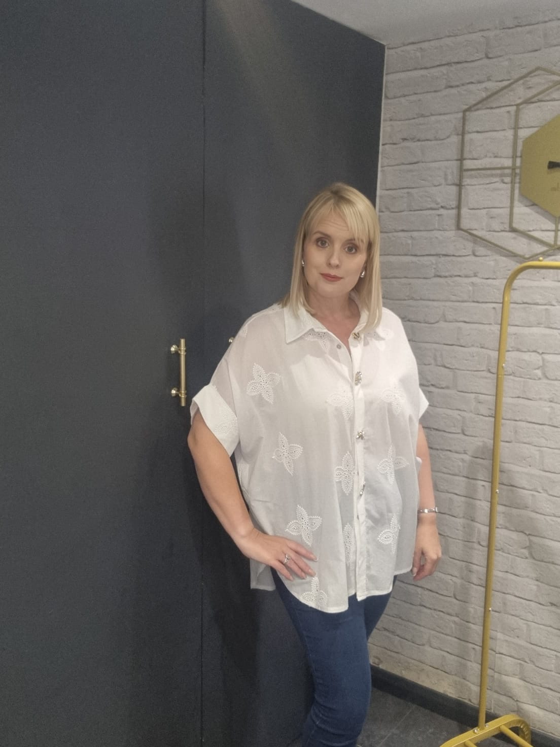 More than just a white shirt — Clara’s oversized silhouette is elevated by a unique button details, making her as eye-catching as she is versatile.